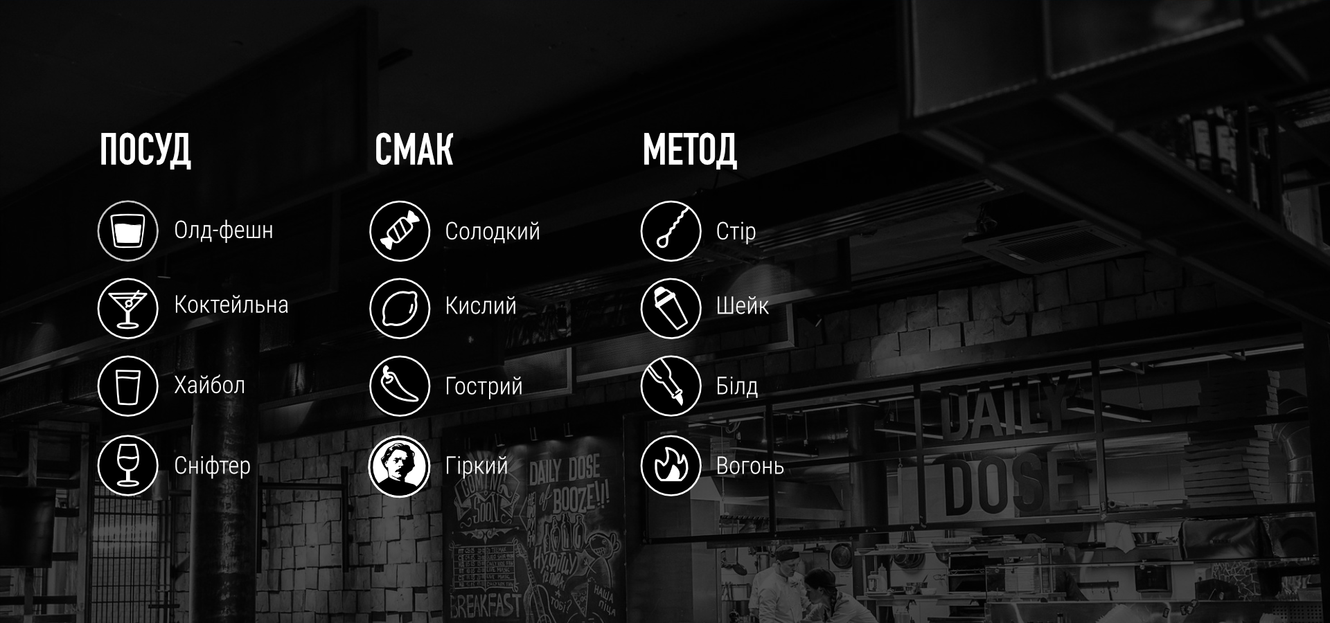 Гастропаб Daily Dose у Львові - це місце, де можна смачно їсти, пити, слухати музику і відпочивати. Заклад розвиває маловідому коктейльну культуру - культуру усвідомленого і розумного вживання алкоголю.
